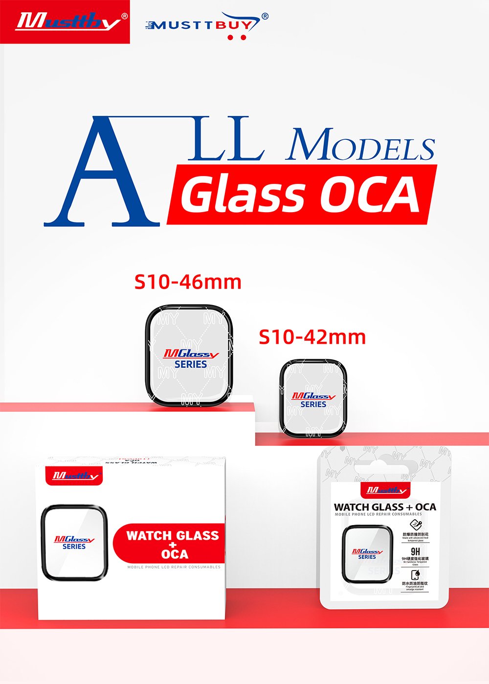 MY Series Front Glass Panel With OCA for Apple Watch S1 S2 S3 S4 S5 S6 S7 S8 S9 S10 Ultra
